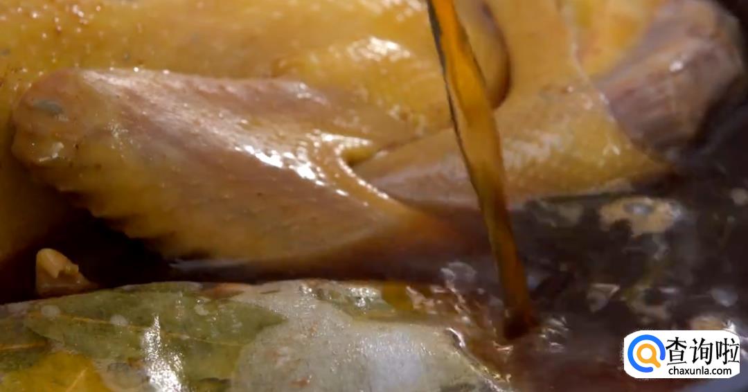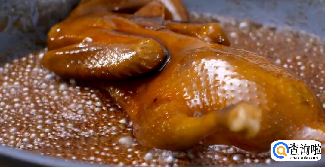 等汤水再次煮沸后,加入料酒和冰糖块。炖煮期间,要用汤勺不断舀起汤汁淋在鸭子身上,让它充分浸润,着色,一直煮到鸭肉酥软为佳。
