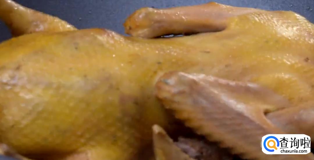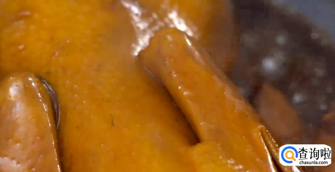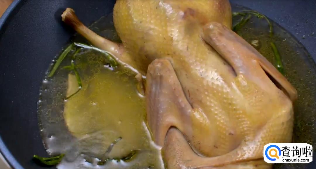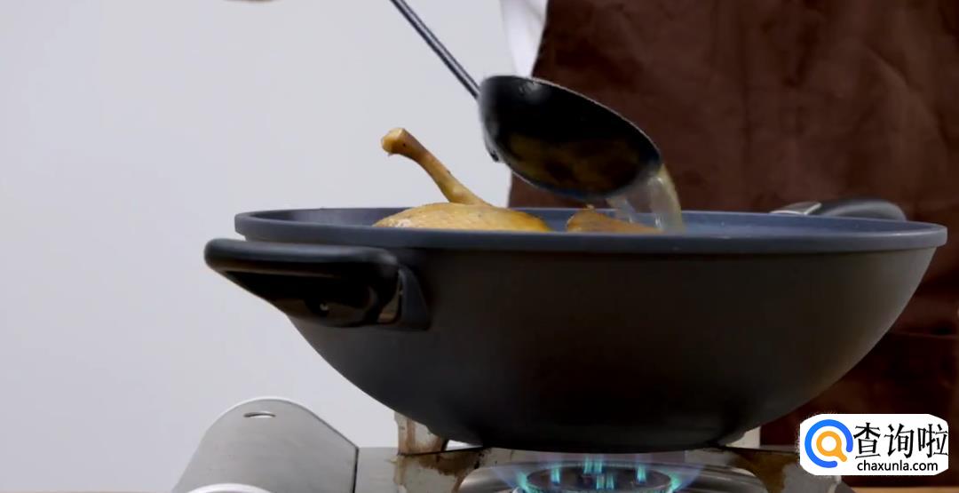 3、不停浇汁可以让鸭子更加入味,上色也更加好看。