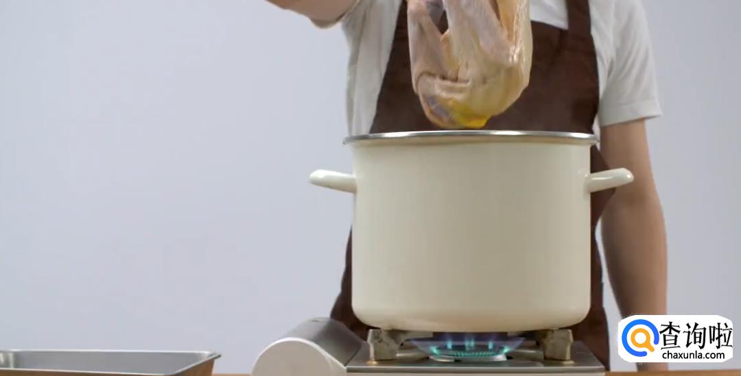 首先准备一锅葱姜水,大火煮沸。将鸭子洗净,然后放入葱姜水中焯水。