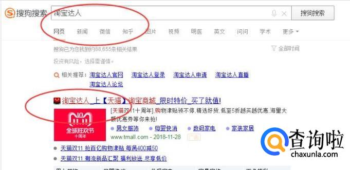 在浏览器上搜索【淘宝达人】,如下图所示: