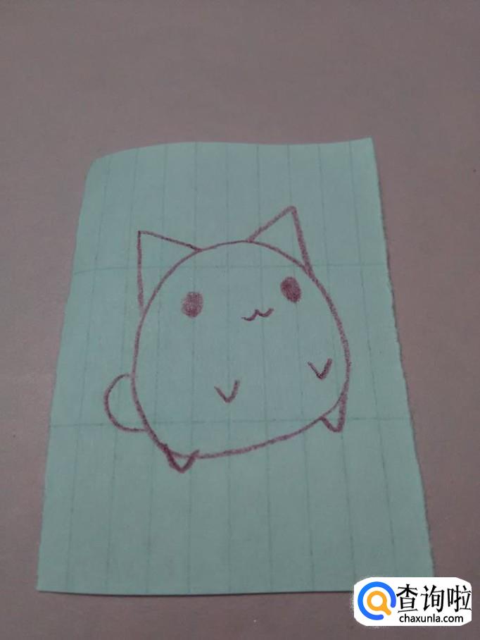在嘴和身体的下面,各画两条折线,表示两条前腿和两条后腿。