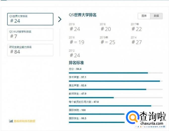 注:QS世界大学排名是世界公认最具影响力的全球性大学排名之一,主要评价指标为:学术领域的同行评价(40%)、全球雇主评价(10%)、单位教职的论文引用数(20%)、教师/学生比例(20%)、国际学生比例(5%)、国际教师比例(5%)