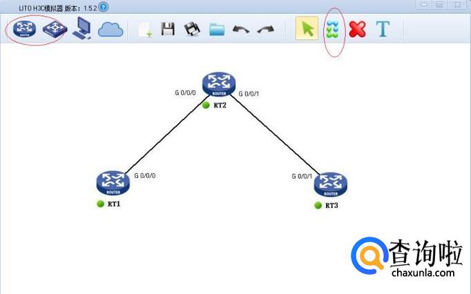 启动LITO H3C模拟器,拖动三台路由器到工作区。