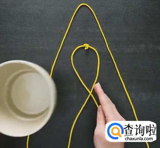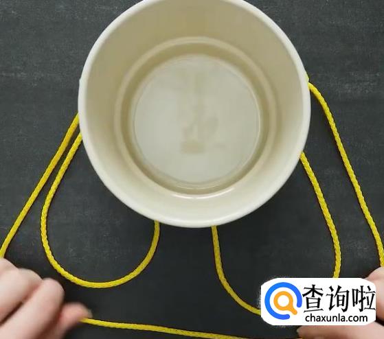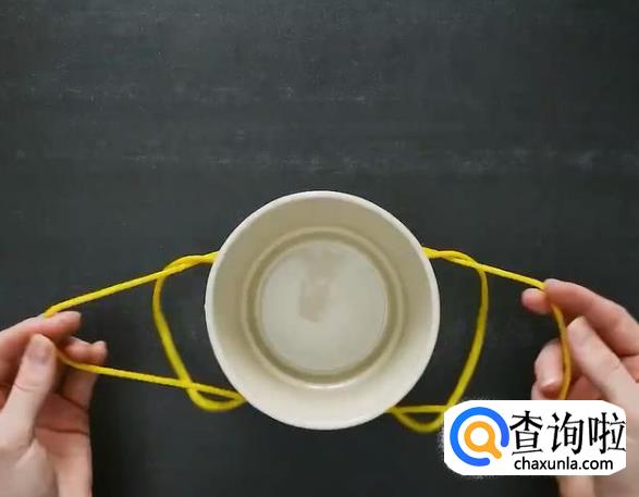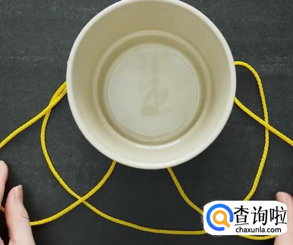 把手里捏着的绳子拽出来,从花盆的上方套过来,摆成像图中的这个样子,松开绳子,准备进行下一步,不要走神哦,小心等会拉错了。