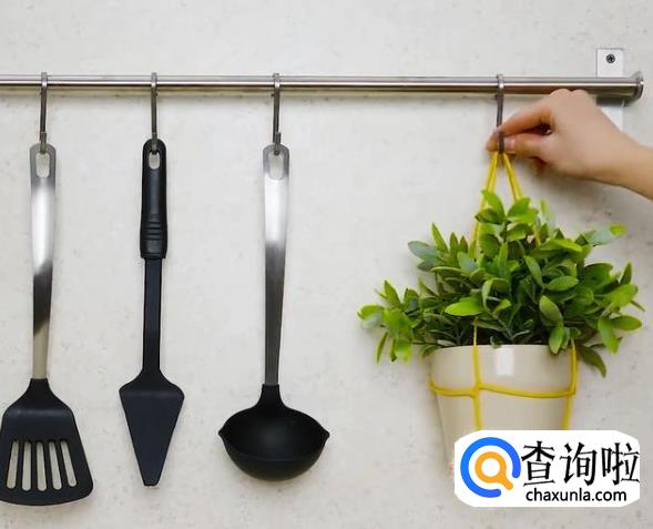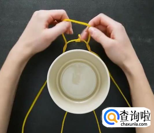 拽靠近花盆左右两边的绳子,提起来就好了,一个吊绳花盆就做好了。