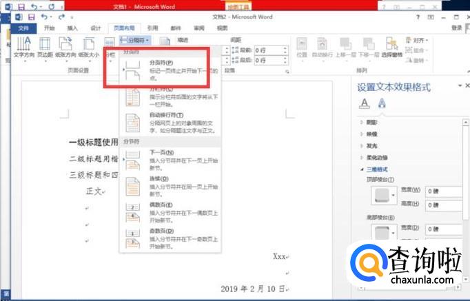 然后就可以看到word文档在刚刚标注的位置后面开始分页。