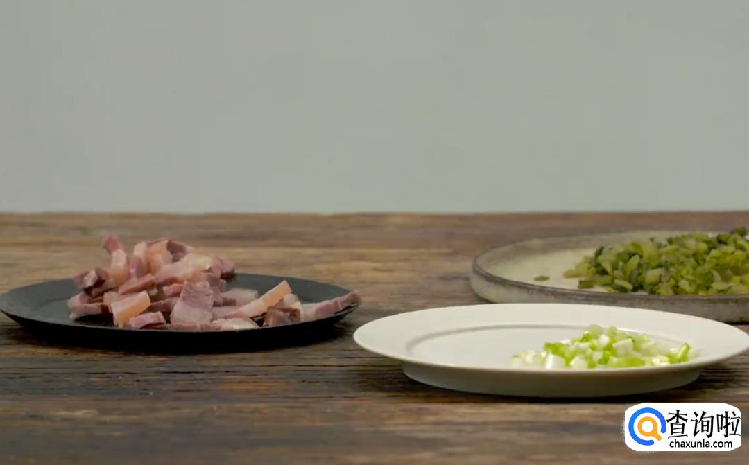 葱白切末,雪菜切末,咸肉切成小片后焯水捞出。
