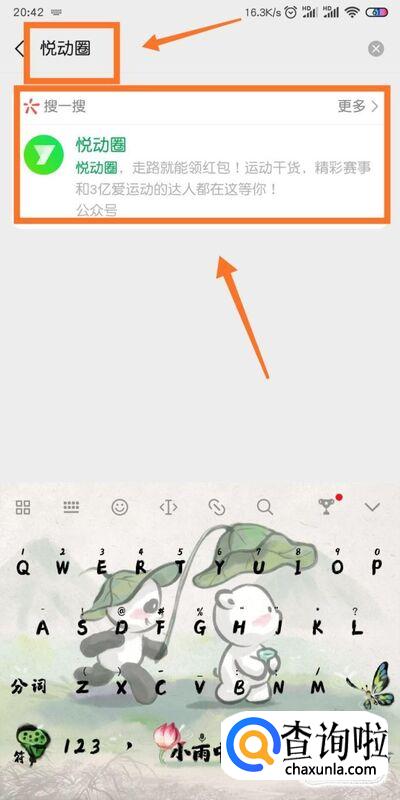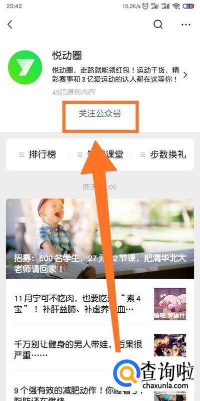 然后我们输入悦动圈再关注其公众号。