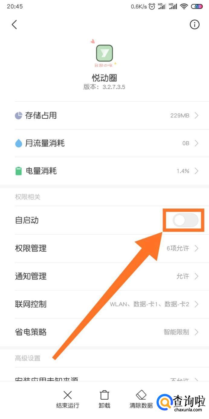 我们要将悦动圈设置为自启动的软件。
