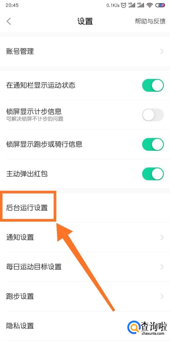 然后点击【后台运行设置】。