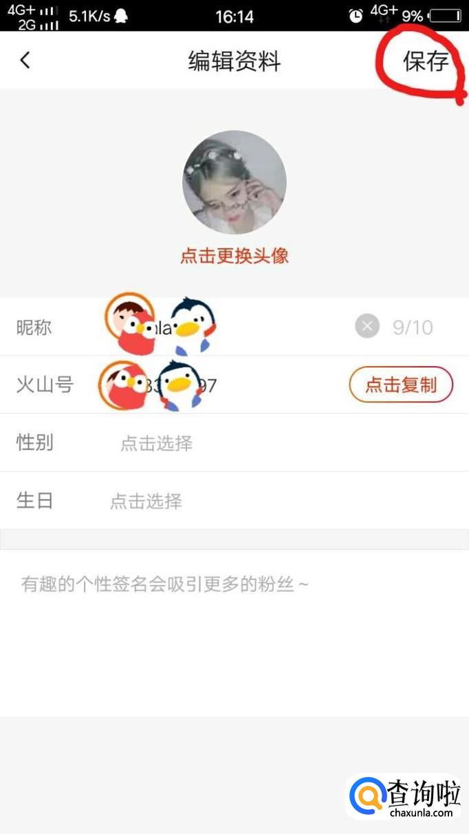 最后,点击“编辑资料”,将自己原来的名字删除就可以更改了,个性签名也是一样。输入完了以后点击保存即可。