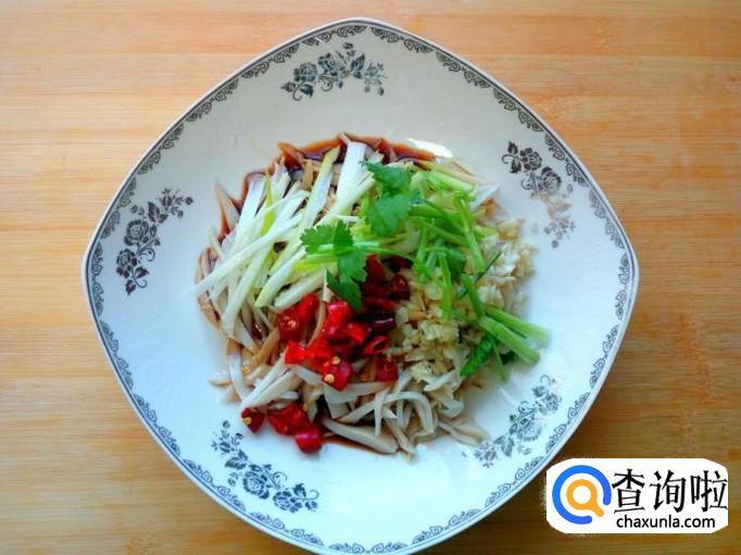 锅里放入油加热,油七,八成热时关火,把热油浇在装有杏鲍菇盘子里的调料上面即可。