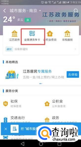 然后我们点击金陵通乘车卡;
