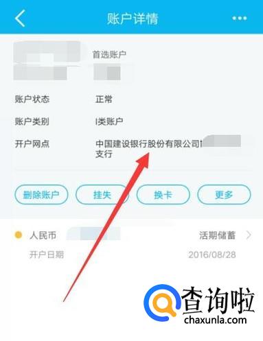 进入下一页面之后,即可看到自己银行卡的开户网点,如图所示。