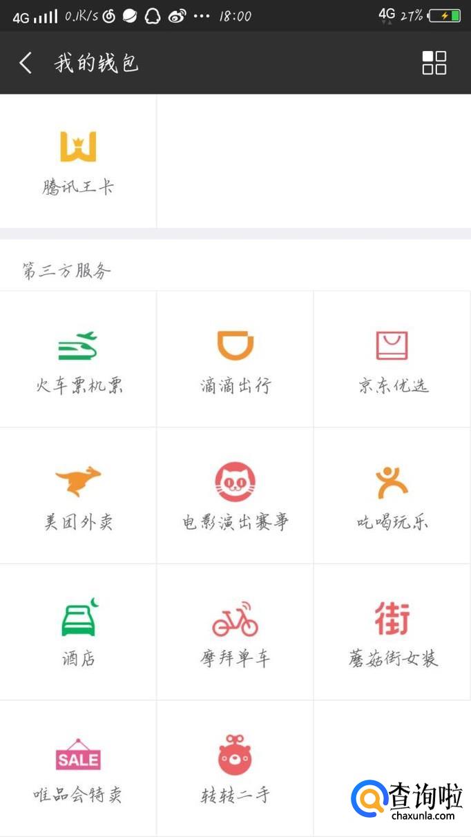 点击“钱包”这个选项,如图1箭头所示。会出现一个新的界面,如图2所示。向下滑动手机,点击“滴滴出行”选项,如图3箭头所示。