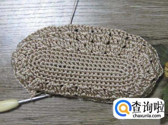 首先使用钩针勾出包底,包底完成引拔结束以后如图。