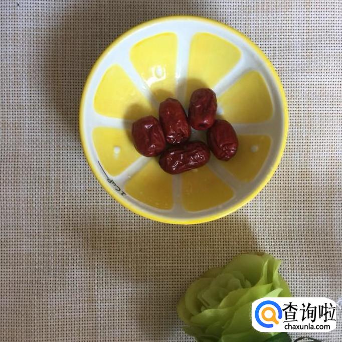 接着准备五颗红枣洗干净,倒入锅中。开小火煮30分钟。