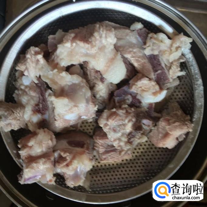 然后把排骨捞出沥干,如下图所示。
