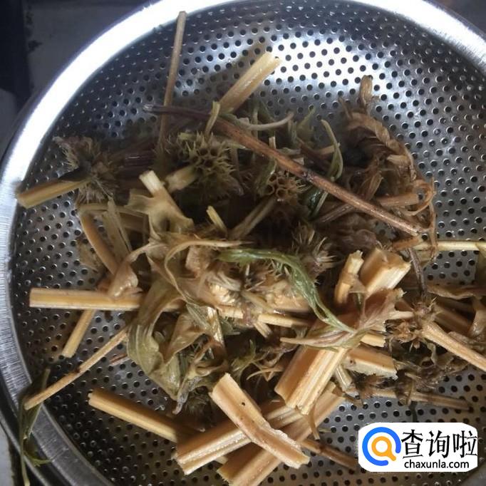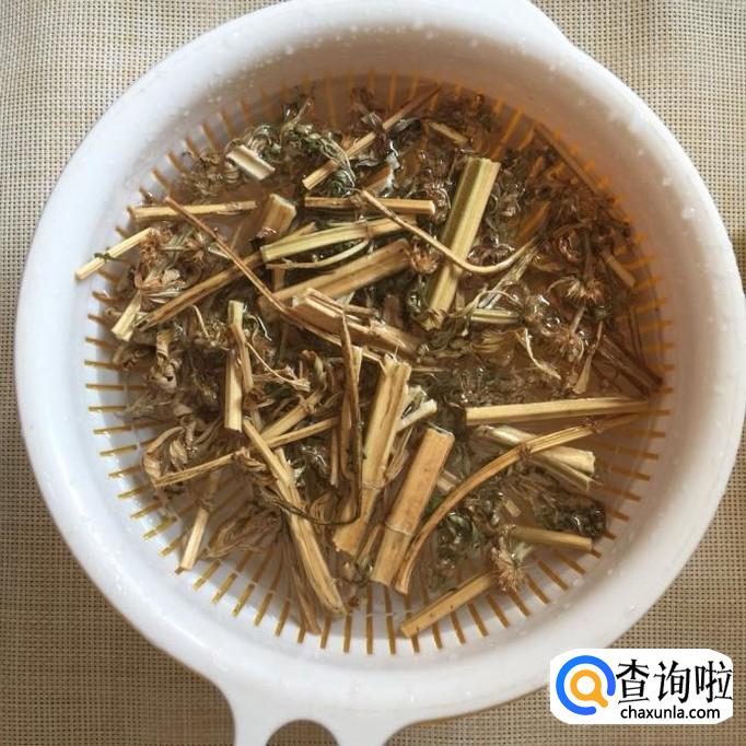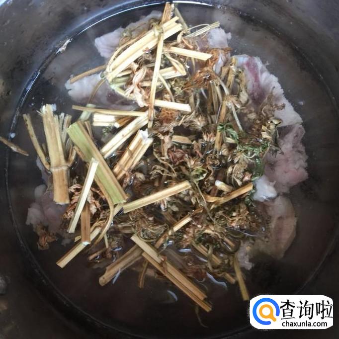 然后把益母草用清水泡开洗净,倒入锅中。