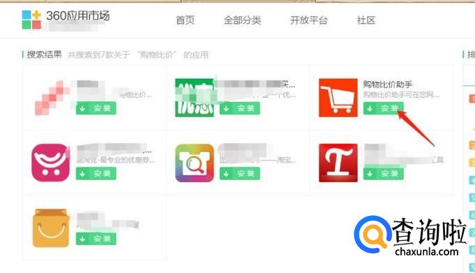 跳转到搜索结果页后我们选择购物比价这个插件点击“安装”。
