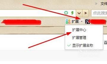 首先我们打开360浏览器,然后点击导航栏目上的“扩展”小三角符合,然后弹出菜单栏,我们选择“扩展中心”进入。