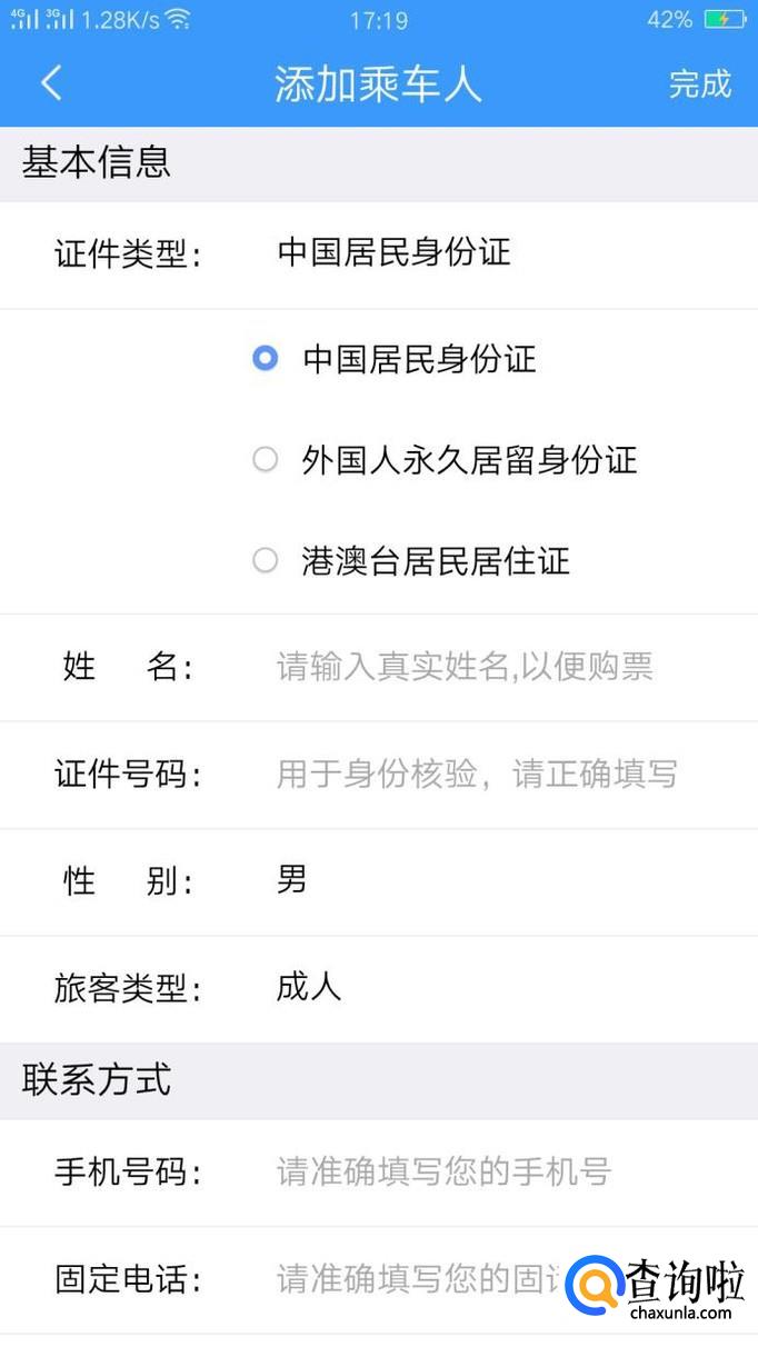 进入“常用联系人”之后,有时间会有“添加”二字,点击添加,然后填写乘客的信息,信息正确,就可以添加成功啦!