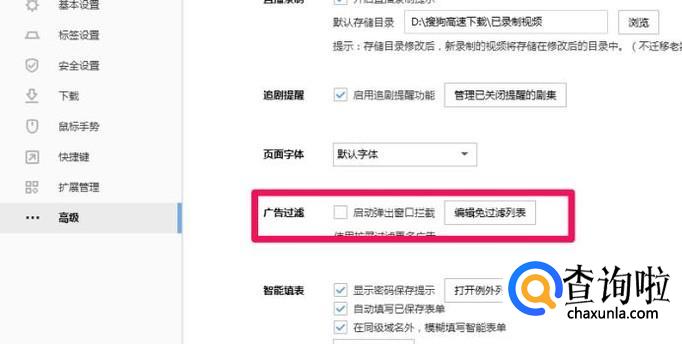 接着往下面翻就找到广告过滤这个选项,然后我们进行勾选。