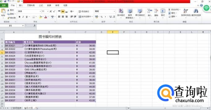 打开含有两个表的excel文件,可以看到“订单明细表”中的“单价”的信息需要使用“编号对照”中的数据,如图