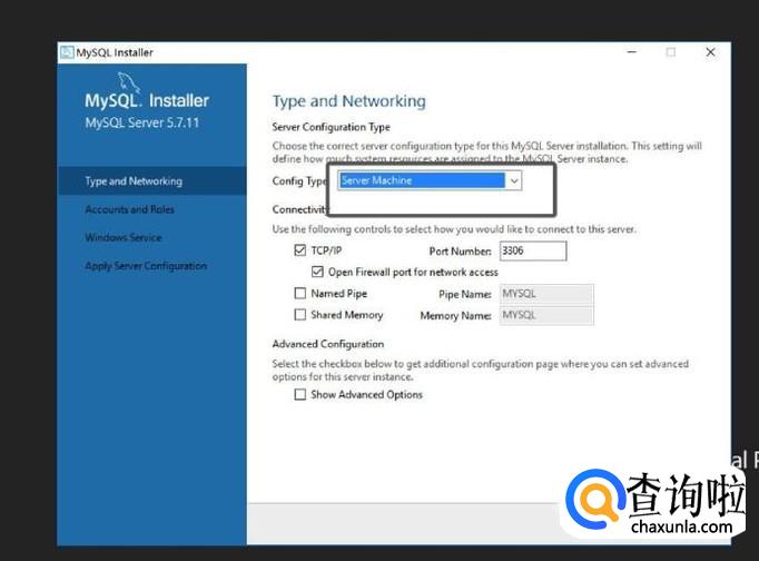选择服务器类型,“Developer Machine(开发测试类,mysql占用很少资源)”、“Server Machine(服务器类型,mysql占用较多资源)”、“Dedicated MySQL Server Machine(专门的数据库服务器,mysql占用所有可用资源)”,大家根据自己的类型选择了,一般选“Server Machine”,不会太少,也不会占满。