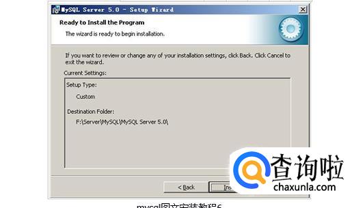 确认一下先前的设置,如果有误,按“Back”返回重做。按“Install”开始安装。