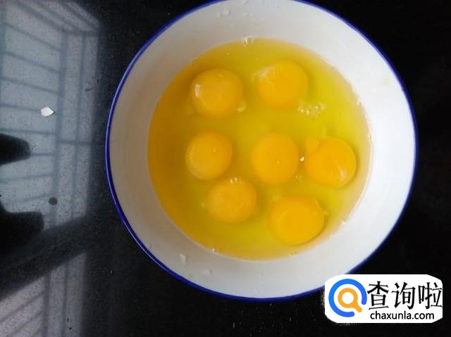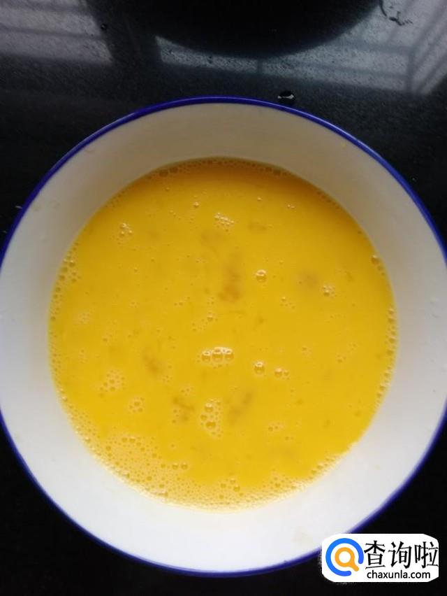 然后把鸡蛋打入碗中,加入少许盐,用筷子搅拌均匀,如图,