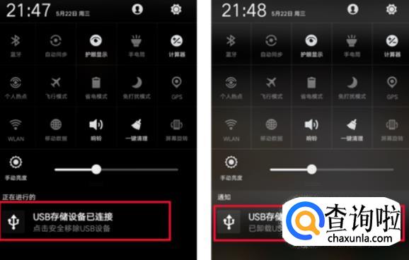 在连接手机后手机上面会显示“USB储存设备已连接”。