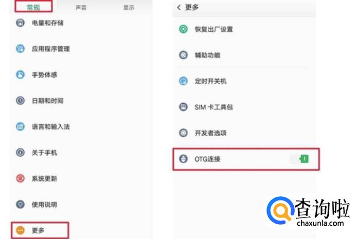 我们先设置自己的手机可以OTG连接,在设置中的常规里面点击打开更多,再点击打开OTG连接。
