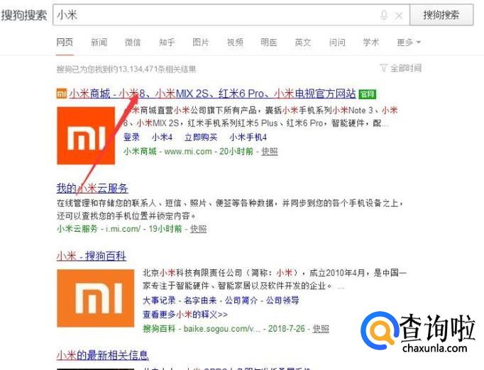 首先通过搜狗搜索找到小米的官方网站,然后登陆自己的账号。
