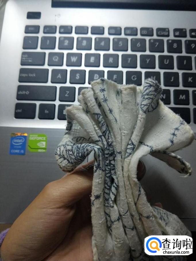 用一根绳子或者布条将绸布从中间部分拉紧,打结。(一定要是中间哦,不然大红花的花瓣会一边长一边短。)