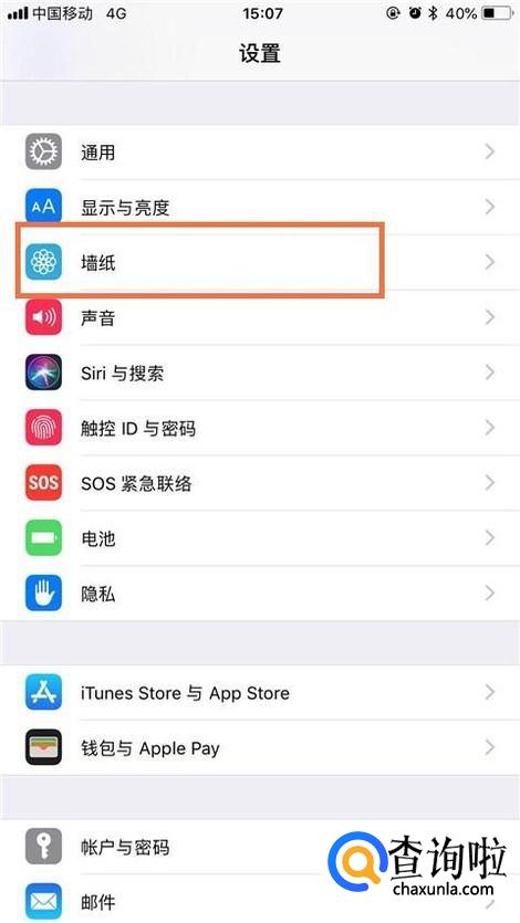 然后点击墙纸,如下图所示。