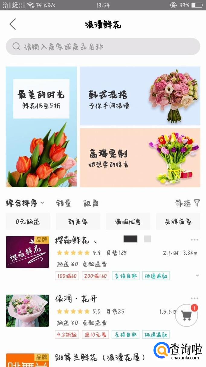 在外卖品类中,右滑一下,选择浪漫鲜花。