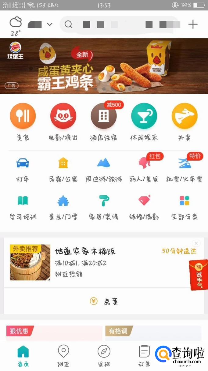 首先打开美团,点击进入主页后,选择下方的外卖选项。