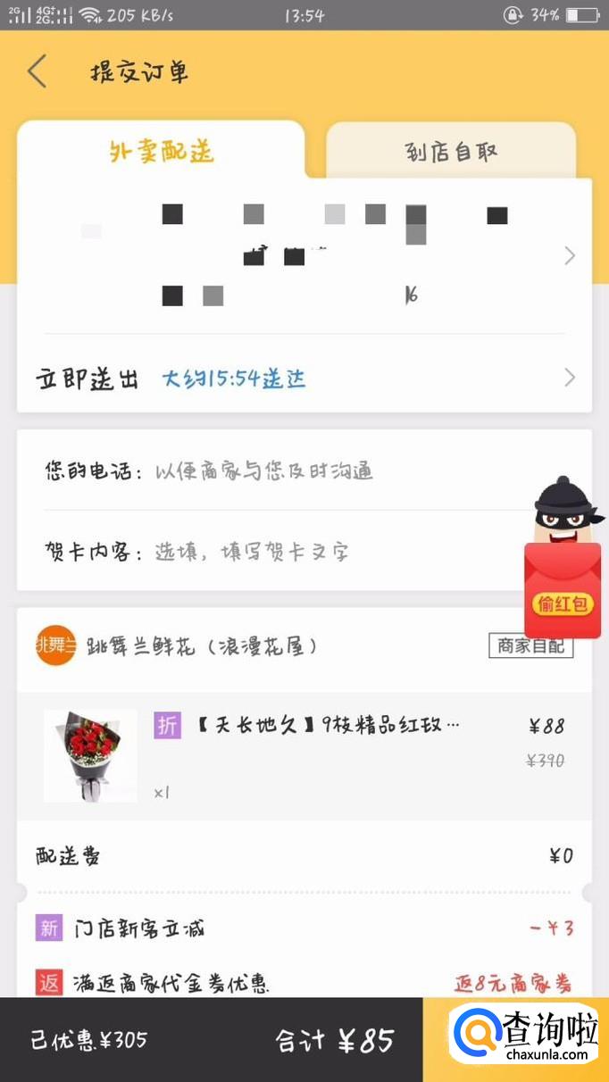 在选择好花店和鲜花之后,按外卖流程,点击付款即可。