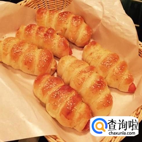 面包卷,将面团提前发酵好,取出来分成6等份,排气滚圆,盖上保鲜膜松弛10分钟,将面团揉成从小到大的棒状,用擀面杖擀成三角形,从大的那头慢慢卷起,再继续发酵20分钟,烤箱预热200°烤15分钟。