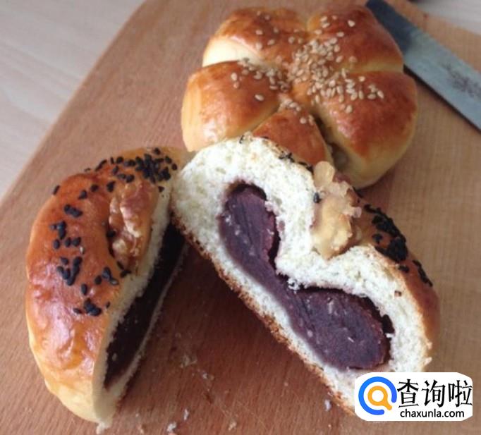 豆沙面包,面团提前发酵好,分割成大小一致的小面团,松弛10分钟,然后包入豆沙馅,继续发酵到2倍大,取出刷蛋液,放入烤箱180°烤20分钟即可