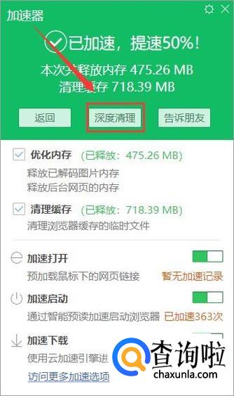 清理完成后还能选择进行“深度清理”,这是打开电脑管家进行清理电脑中的垃圾。同时,大家还可以选择是否打开“加速打开”“加速启动”和“加速下载”。
