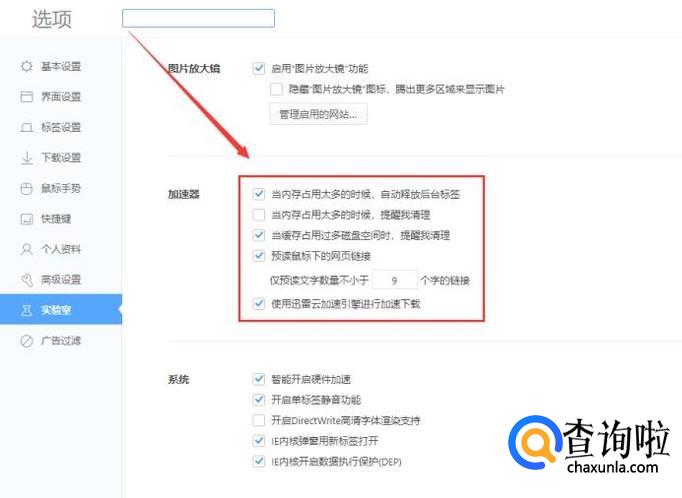 点击下部的“访问更多加速选项”,可以访问浏览器中对“加速器”功能的设置。