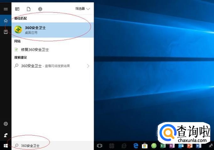 我们可以在搜索框输入"360安全卫士",Cortana(小娜)会搜索系统中所有的匹配项。点击"最佳匹配→360安全卫士"项,这样打开应用软件是不是感觉很方便。