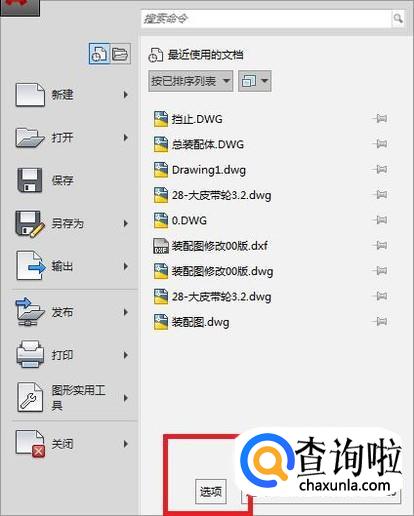 进入该操作命令后,如下图所示选择“选项”命令左击进入;