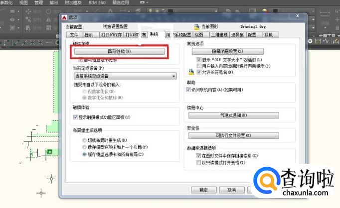 点击系统,这时切换到系统一栏的对话框,如下图所示选择图形性能左击进入;
