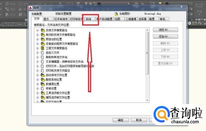 左击进入选择命令对话框后,选择“系统”的命令;