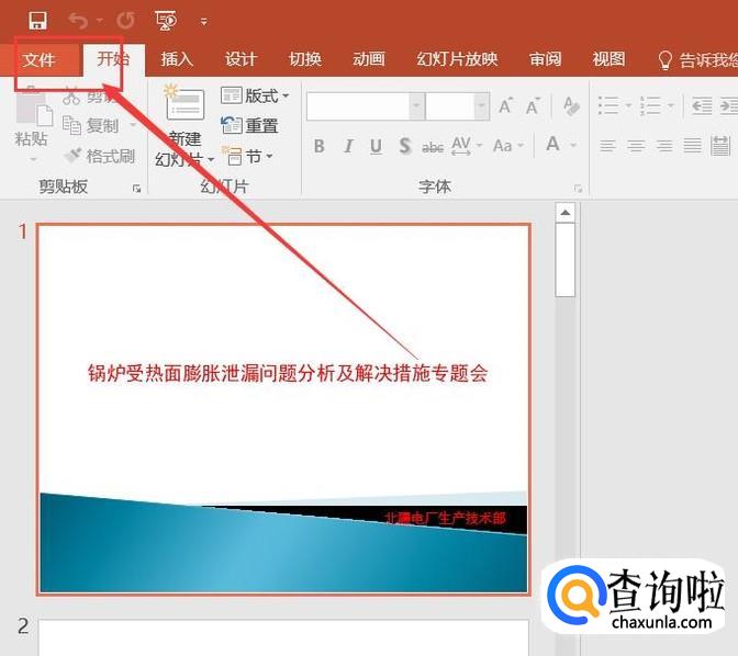 首先,请大家打开需要转换的PPT文件,点击主页面上方的“文件”选项。