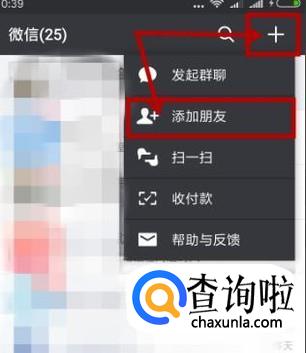 打开微信,点击右上角的“+”,然后点击“添加朋友”查找丰巢快递柜,关注该公众号,如图所示。