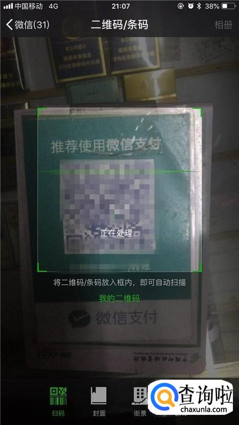 接着用手机扫描商家的二维码,如下图所示。